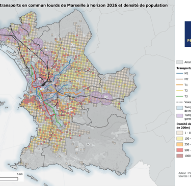 Nos cartographies enrichissent vos diagnostics - qu'ils soient socio-économiques, liés à la mobilité ou répondant à tout autre enjeu - en vous offrant : le croisement de données (cercles proportionnels et dégradés de couleurs, densités et équipements, etc.) et la superposition de couches d'informations pour des analyses spatiales approfondies.