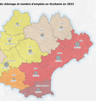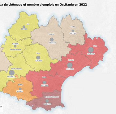 Carte de dégradés de couleurs (plages de valeurs tels que : taux de chômage, taux de motorisation, etc.)