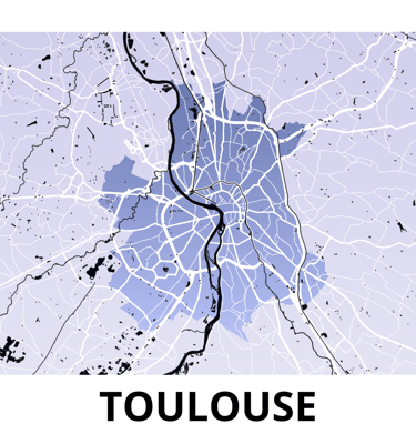 Nous concevons des cartes claires, précises et esthétiques, respectant les principes de la sémiologie graphique et adaptées à tous types de territoires (IRIS, quartier, commune, intercommunalité, métropole, département, région, national).